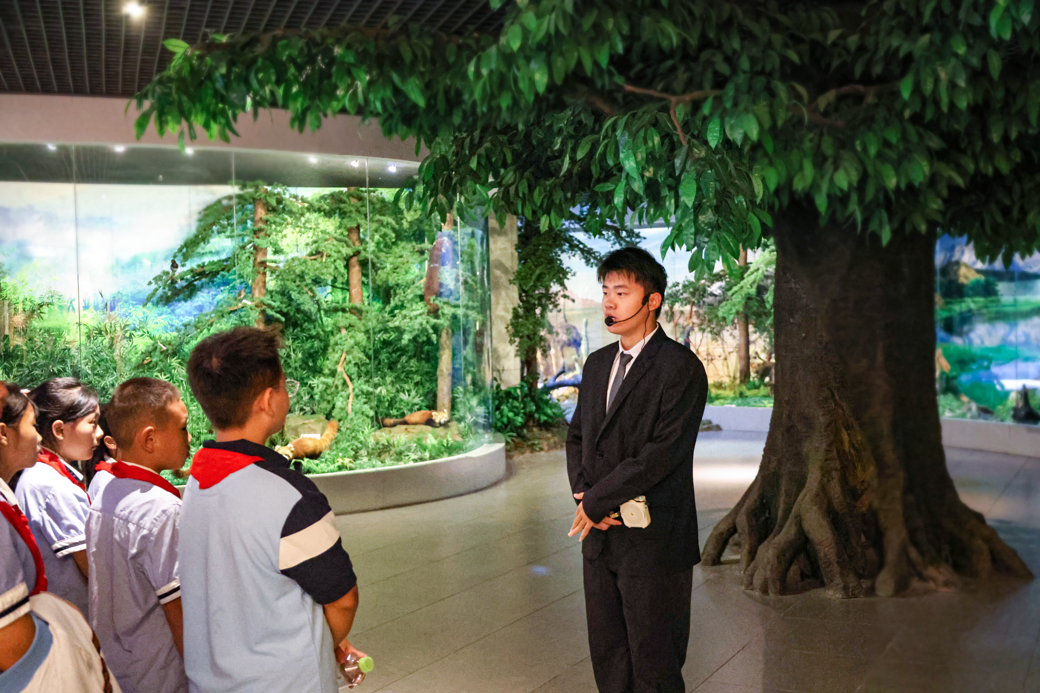 9月17日,四川农业大学动物标本馆联合雅安雨城区科学技术协会,为雅安雨城第八小学、名山实验小学的约150名小学生带来沉浸式“打卡探馆”科普活动。孩子们化身“科学小侦探”,在科普解说员带领下,在“陆地猛兽区”积极互动并聆听骨骼结构讲解,在“川西本土物种区”了解大熊猫等标本背后的川农科研故事,趣味十足的互动体验,让静置的标本“活”了起来,既为孩子们普及了自然科学知识,也悄然播下了探索自然、热爱科学、情系三农的种子。