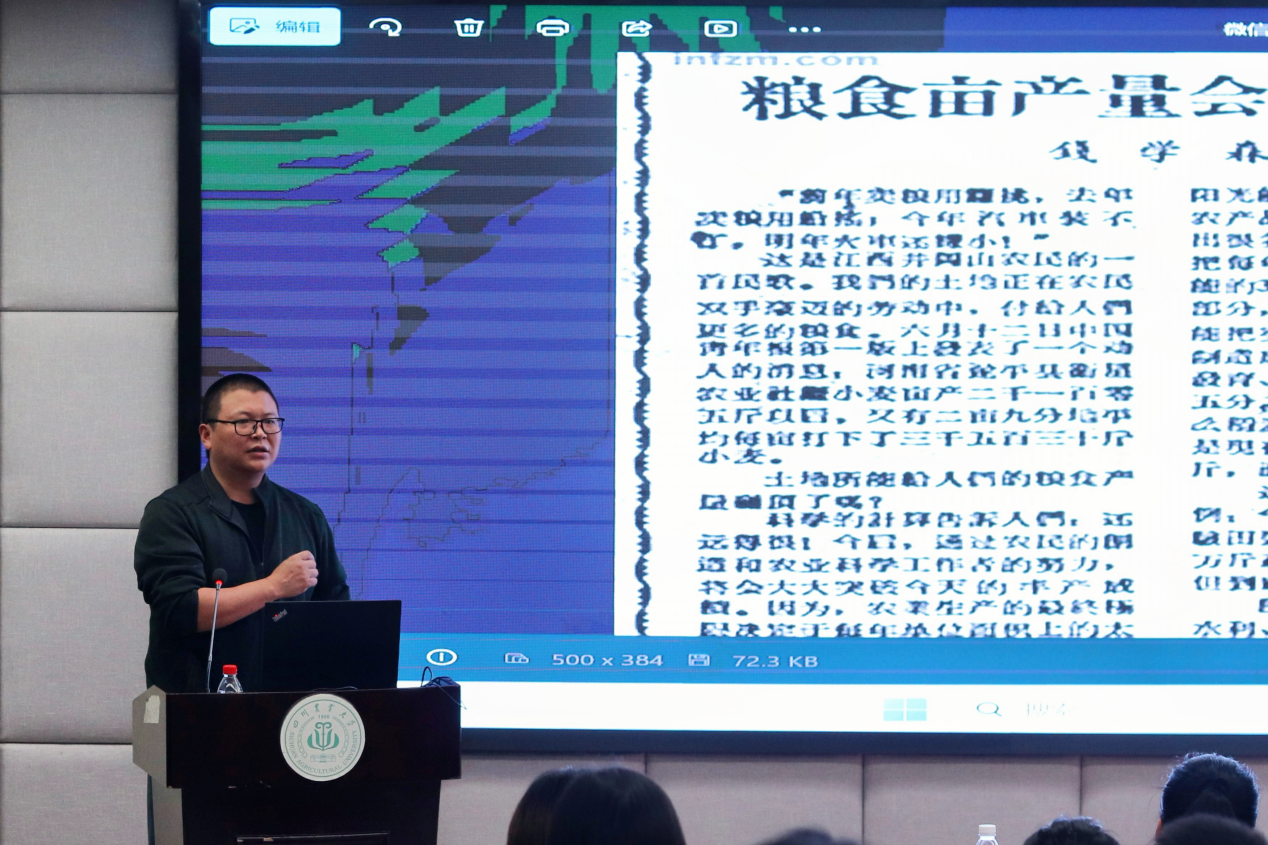 讲座以杨开渠教授生平为线索,分为“少时立志”“战时育稻”“闲时寄情”三个篇章,兼具历史的厚重与精神的温度,借助丰富的各类史料,生动立体地还原了杨开渠教授抗日战争时期将个人理想融入国家命运,不畏艰难险阻,全身心投入,以科研实绩保障抗战大后方粮食供给的事迹,激励广大师生坚定“以农报国”信念,把科研论文写在祖国广袤田野上,为实现中华民族伟大复兴贡献力量。