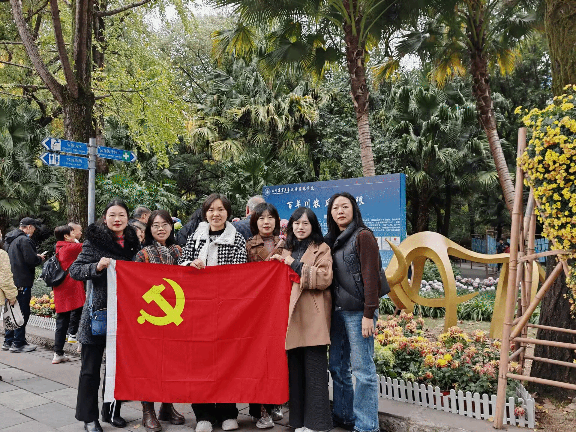 档案馆成都校区党小组观摩人民公园菊展