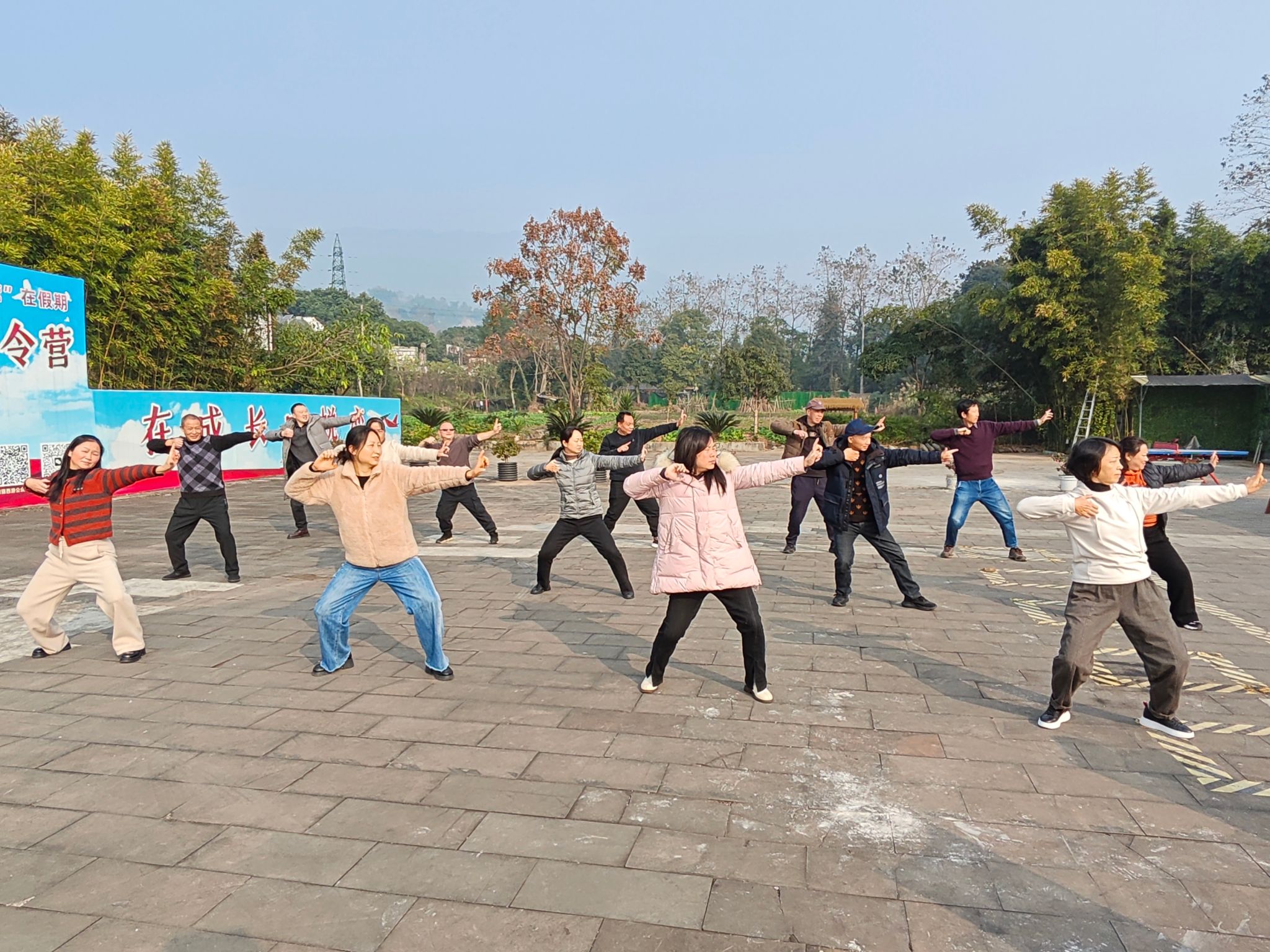 图书一馆党小组集体练习“八段锦”健身气功