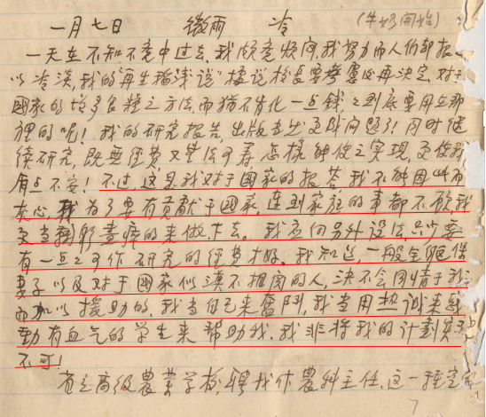 “继续研究(再生稻),既无经费,又无法可筹……我为了要有贡献于国家,连家庭的事都不顾,更当鞠躬尽瘁地做下去。我非将我的计划实现不可!”