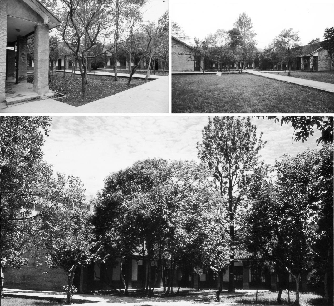 建院初期的行政楼、图书馆 、学生宿舍和农场
